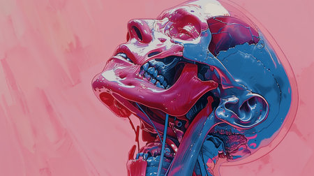 A close up of a human face with the muscles and veins clearly visible. Concept of realism and detail, showcasing the intricacies of the human body