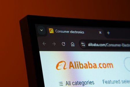 Dhaka, Bangladesh- 02 June 2025: Close-up of a computer screen displaying the Alibaba web interface in dark mode