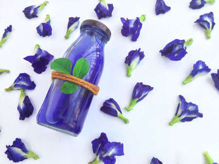 Violet flower, Butterfly Pea Herbal hot drink in bottle.