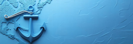 A blue anchor rests on a nautical map, creating a serene backdrop with space for text. Ideal for travel or marine related projects.
