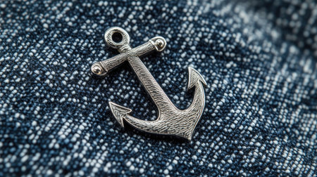 This image features a silver anchor pendant resting on textured denim fabric, showcasing its meticulous design and adding a stylish touch for nautical-themed items.
