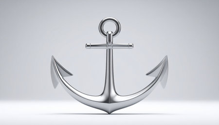 A gleaming silver anchor stands firm against a clean, minimalist background.
