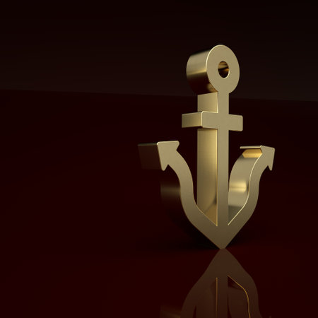 Gold Anchor icon isolated on brown background. Minimalism concept. 3D render illustration