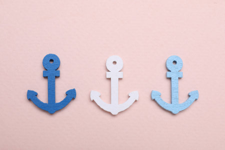 Anchor figures on pale pink background, flat lay