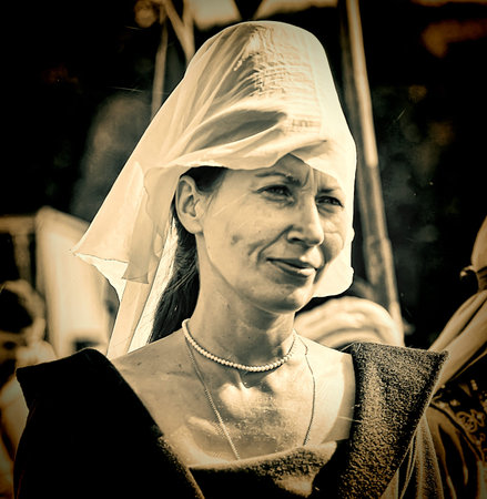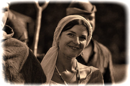 Russia, Vyborg, 30,07,2011 A woman in historical clothing at the Festival of the historical reconstruction of the Middle Ages Vyborg Castle
