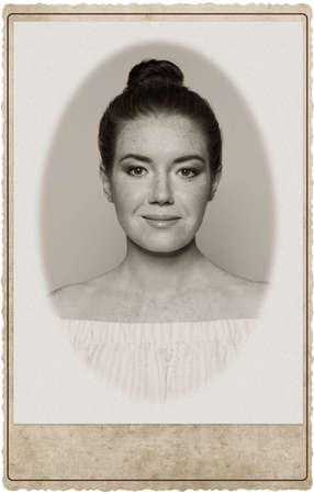 Portrait of a beautiful young woman in vintage dress. Photo in old color image style.