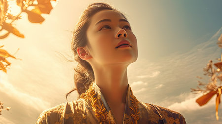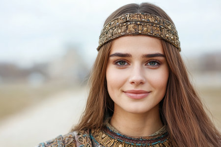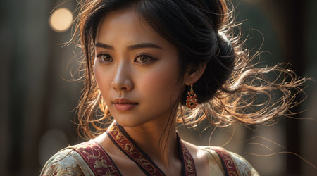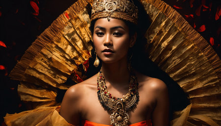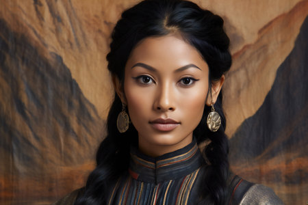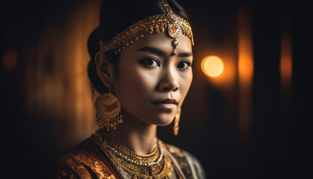 An AI generated illustration of a stunning young woman of ethnic background wearing a traditional outfit