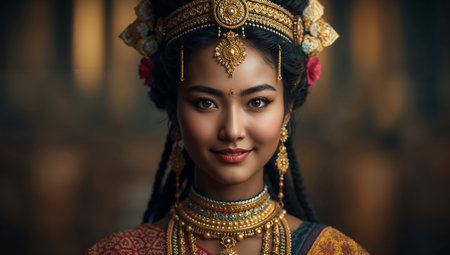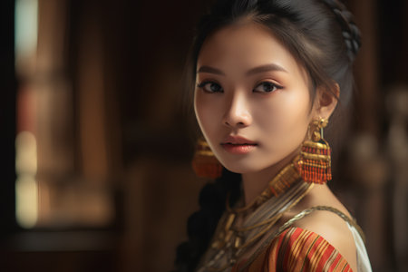 Portrait of a beautiful asian woman wearing traditional clothes and jewelry