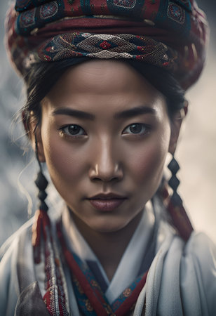 Oriental woman with Asian eyes in ethnic costume. AI generation