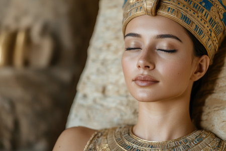 An AI generated illustration of a young woman wearing ancient Egyptian costume