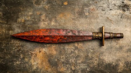 Ancient short copper sword. Ancestor's weapon. AI generative.