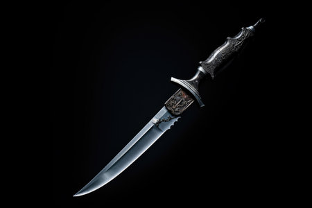 Knife in the form of a dagger on a black background, Knife on a black background HD 8K wallpaper stock photographic image, AI Generated