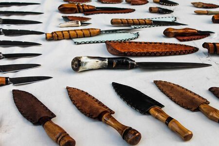TBILISI, GEORGIA, September 18, 2018: Steel daggers with ornament.
