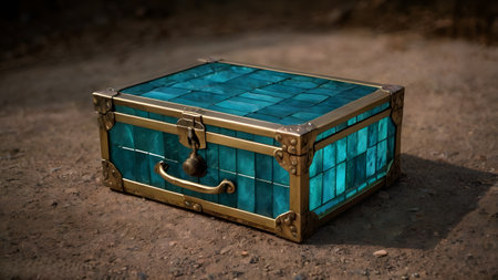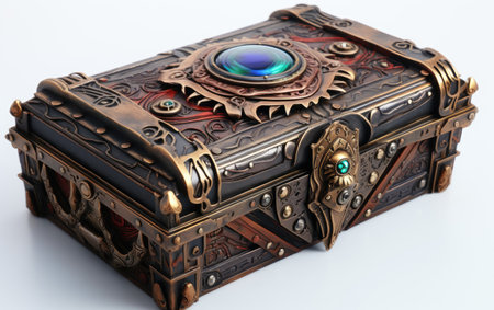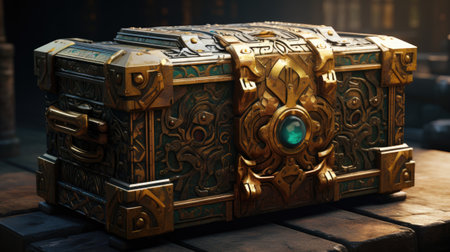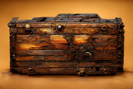 An antique treasure chest with ornate decorations, evoking a sense of mystery and historical charm.