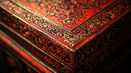 Discover the beauty of this ornate red and gold decorative box, featuring intricate designs and detailed craftsmanship that enhances any artistic display.