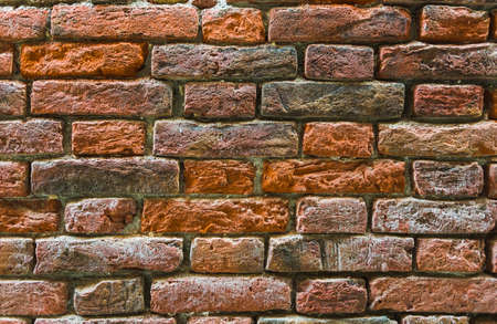 the old textured surface of a red brick wall for wallpaper and for a background in retro style
