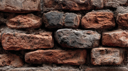 Close-up shot of rustic red brickwork, highlighting the textures and varied hues, ideal for design and architecture-themed stock photos AI generation