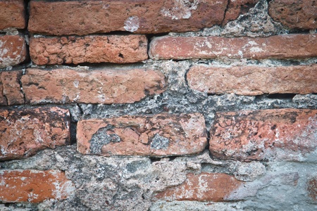 Texture of brick wall with cracked weathered structure red white color close-up .