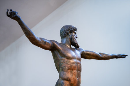 Athens, Greece - March 16, 2018: Bronze statue of Zeus (Zeus of Capo Artemisio) in the National Archaeological Museum