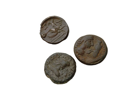 Ancient Roman bronze coin. Obverse and reverse - blank background.