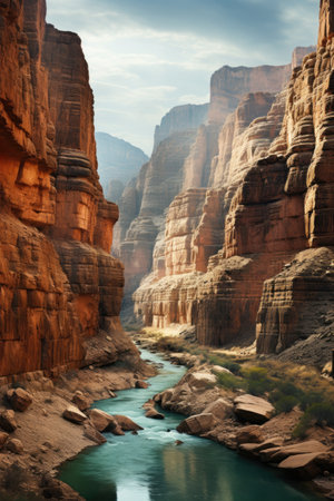A breathtaking view of the river running through the Grand Canyon in Arizona, showcasing its stunning natural beauty with waterfalls and rock formations. --ar 3:2 --v 6.1 Job ID: a8760204-3f51-4d7e-b545-19414e57a8b1