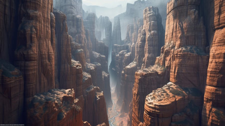 A fantasy landscape of towering cliffs with water running between them, cinematic and hyper-realistic. --ar 3:2 --v 6.1 Job ID: cdebb6da-e1a0-4e3f-8156-25f21dafefab
