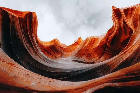 AI Generated. Majestic sandstone slot canyon illuminated by soft light showcasing vibrant orange and red hues in a natural landscape setting