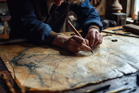 A marine engineer working on a ship blueprint --ar 3:2 --v 6 Job ID: 5433f11b-3e2e-4a34-a84f-a36b8a71184d
