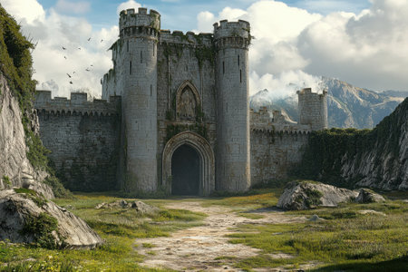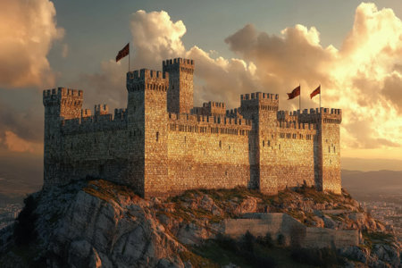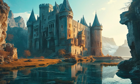 Medieval castle associated with the Knights Templar, shrouded in an aura of mystery and history. Generative Ai