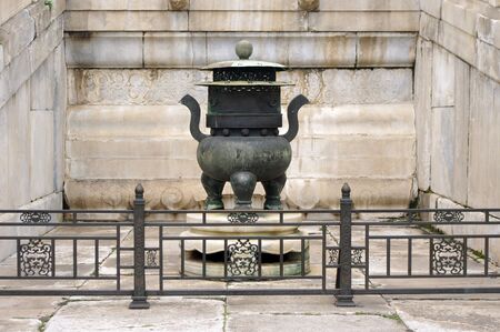 traditional Chinese style of religious artifacts - bronze dings in a shop