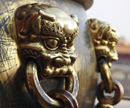 Chinese ancient bronze ware, closeup of photo. Selective focus.
