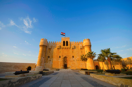 Citadel of Qaitbay (15th-century fort), Alexandria, Egypt, North Africa. Famous landmark Fort of Qaitbay (Bey Citadel), defensive fortress located on Mediterranean sea coast