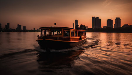 Sunset over tranquil water, nature beauty in nautical vessel generated by artificial intelligence