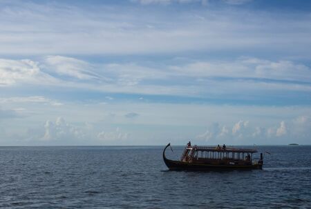 Boat floating on the ocean on a cloudy day