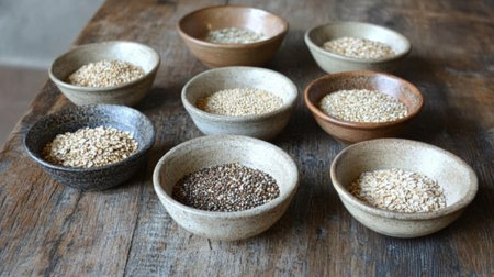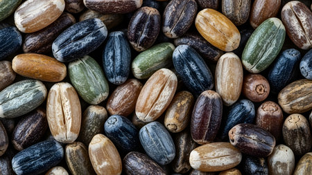 A vibrant close-up of various mustard seeds showcasing unique textures and colors. Perfect for culinary themes, food art, and organic inspirations.