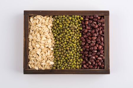 Assortment Bean on Cream Table, Nuts, Soybean, Red Bean. Ingredient Making Laba Porridge