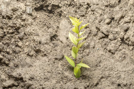 Dead plant and sun light,plant in the morning light on ground background,hope .Small plants on the ground in spring.raised bed gardening,death of growth,Photo refresh and Agriculture concept idea.