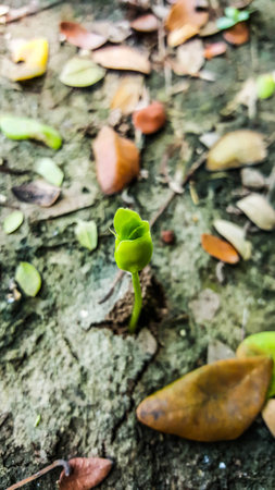 New small tree growing from the ground in the forest