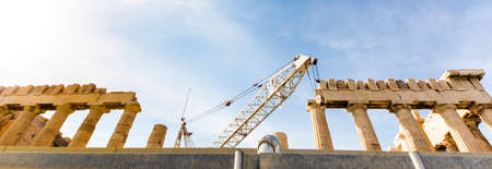 Spectacular sights of the ruins in ancient Greek Acropolis, old temple of parthenon and stone pillar columns