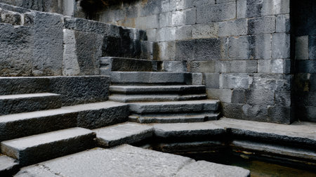 Captivating close-up of intricate stone carvings on ancient temple steps, showcasing the artistry and architectural craftsmanship of past civilizations.