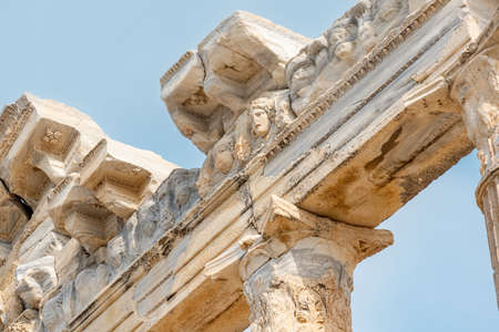 fragment of the entablature of the ruined temple of Apollo from Side with a stone-cut relief on the frieze