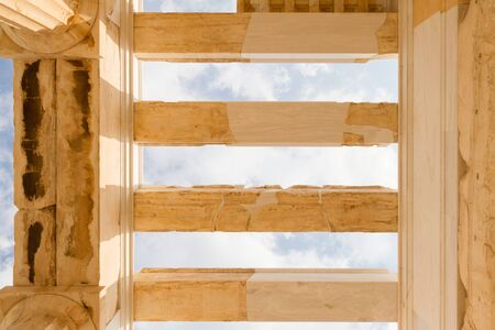 Roof, pillars and the sky on the Acropolis of Athens in Greece