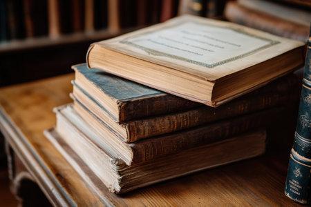 Stack of Old Books on Table