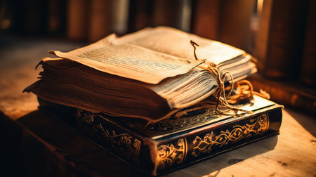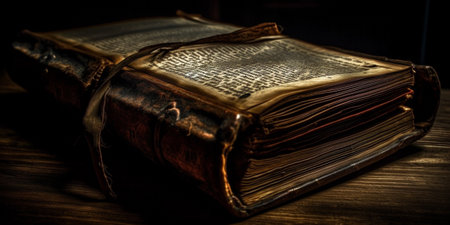 Textured Bible ancient closeup. Education page. Generate Ai