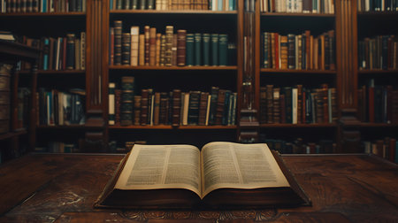 An open book lies atop a rustic wooden table, illuminated by soft light that creates gentle shadows. This scene evokes a sense of nostalgia and invites leisurely reading.
