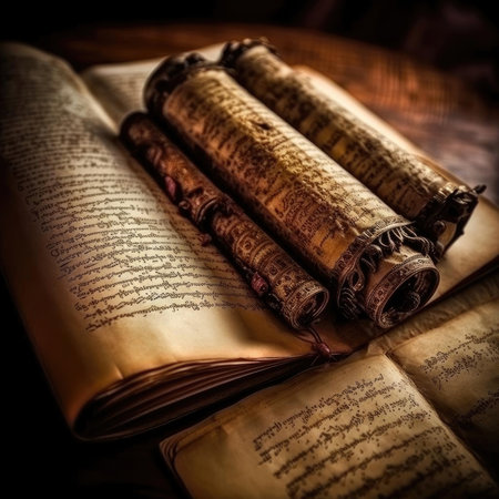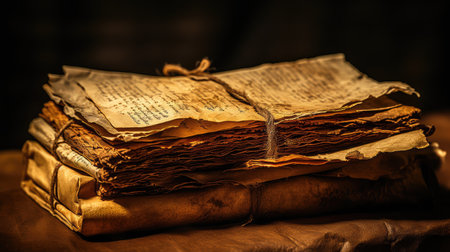 Explore the beauty of ancient scrolls featuring intricate writings. The rustic texture and warm tones evoke a sense of history and knowledge.