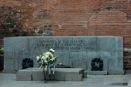 A monument to the dead for Bulgaria. Eternal fire: Bulgario, they died for you, one was worthy of them and they were worthy of you, mother, they were flames