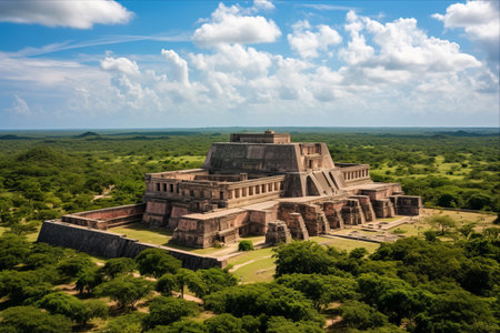 A majestic pyramid stands tall, a testament to the ancient Mayan civilization. Its intricate structure and weathered stone whisper tales of a bygone era.