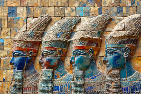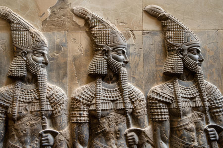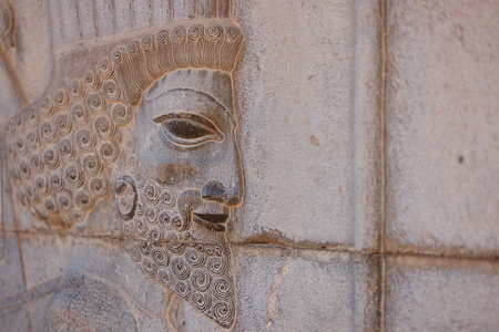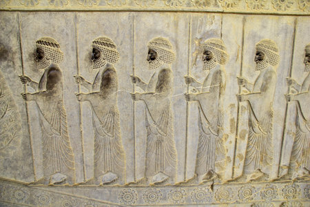Detailed stone carvings of persian soldiers in traditional attire from persepolis