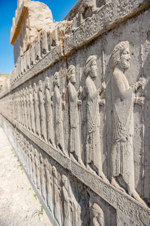 Persepolis, Iran - May 15, 2017: Walls of the ancient capital of Persia. Persepolis is the capital of the Achaemenid kingdom. sight of Iran. Ancient Persia. Bas-relief on the walls of old buildings.